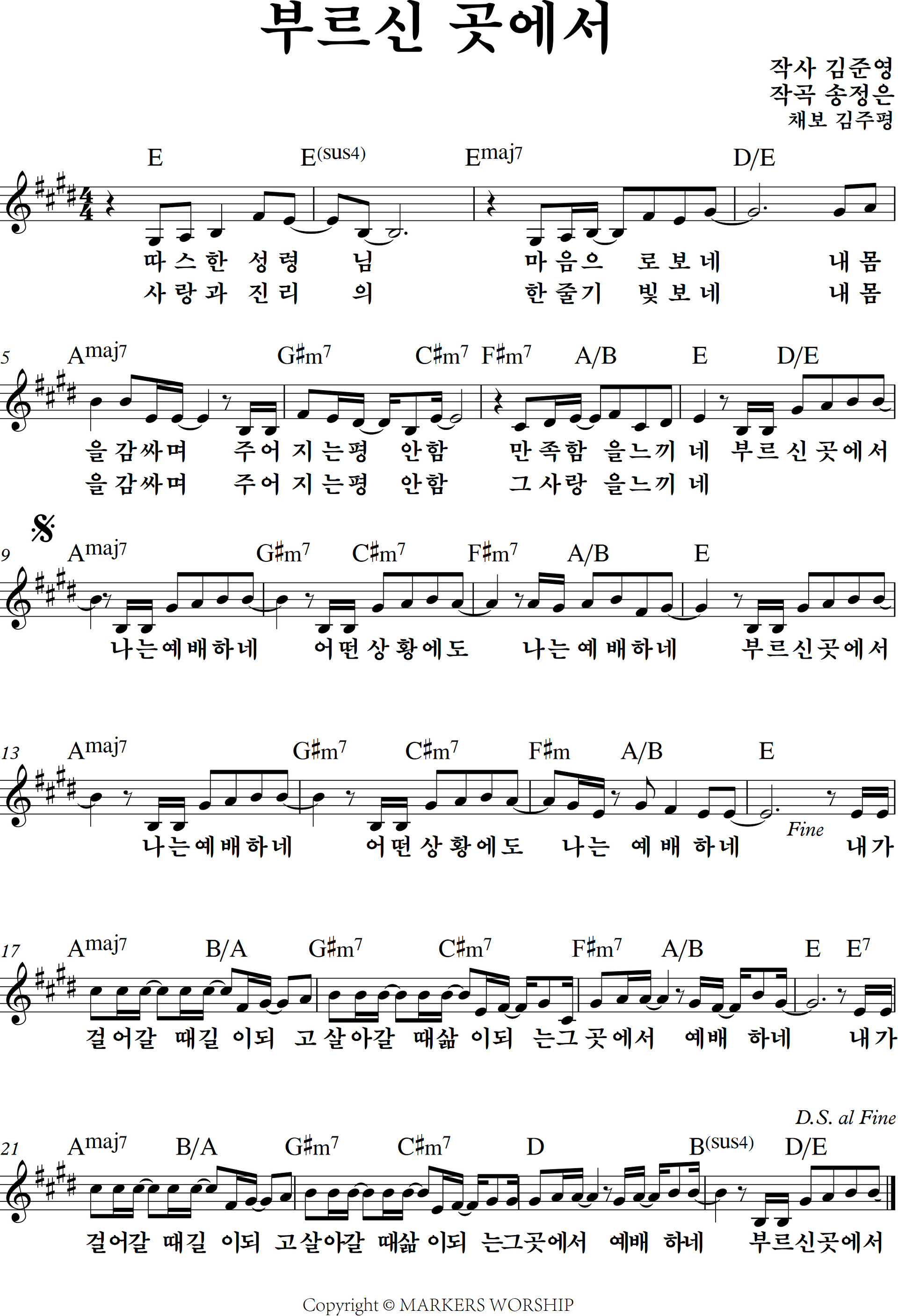| 부르신곳에서 (가사/영상/악보) ShiE K Ver./마커스/비컴퍼니 (E 코드) (0) | 2020.11.09 |