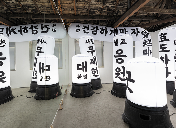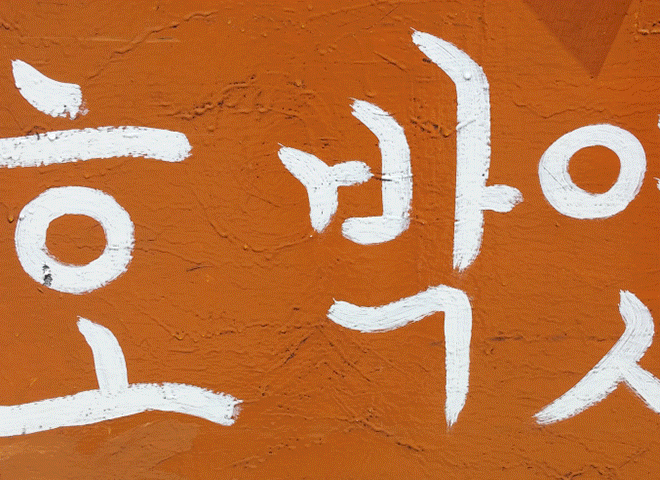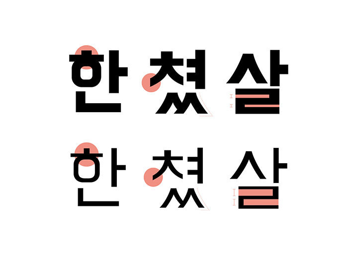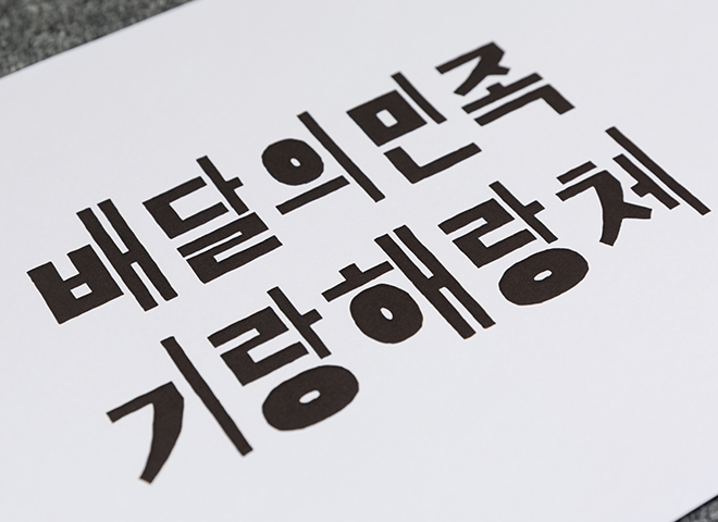 배달의민족 기랑해랑체는 한 자 한 자 집중해 그리려다 삐뚤어진 글자 테두리 모양 원형을 채워 만든 것입니다. 칠하고 보니 동그라미가 마음과 다르게 커진 것이 가장 큰 특징입니다.