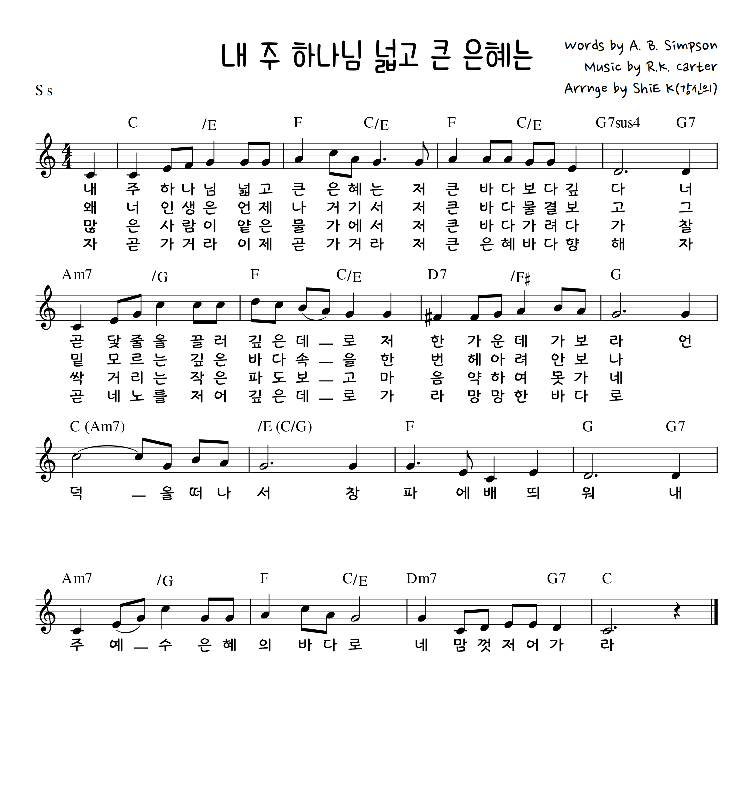 내 주 하나님 넓고 큰 은혜는 저 큰 바다보다 깊다