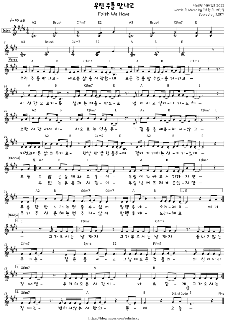 우린주를만나고 (가사/영상/악보/인트로) - 어노인팅 (E F Gb G Ab A Bb C코드)